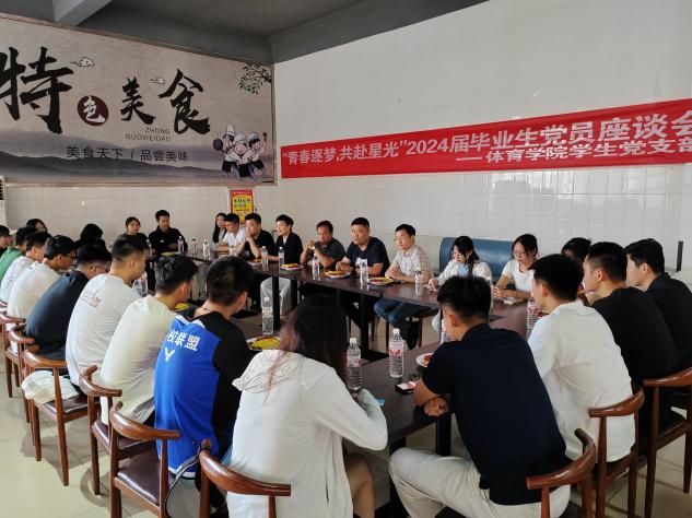 为进一步加强毕业生党员教育,更好地倾听毕业生心声,深化学院与学生之间的情感纽带,体育学院学生党支部于5月31日在雅苑餐厅召开“青春逐梦,共赴星光”2024届毕业生党员座谈会。体育学院副院长陈翀、团委书记陈明、研究生党支部书记孟喜龙、科研秘书宋博、本科生第一党支部书记刘兆辉以及2024届毕业生党员参加此次座谈会。