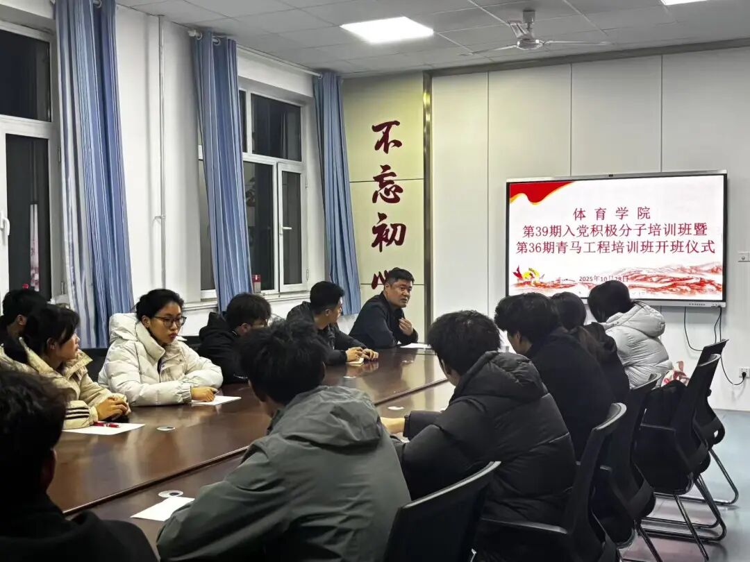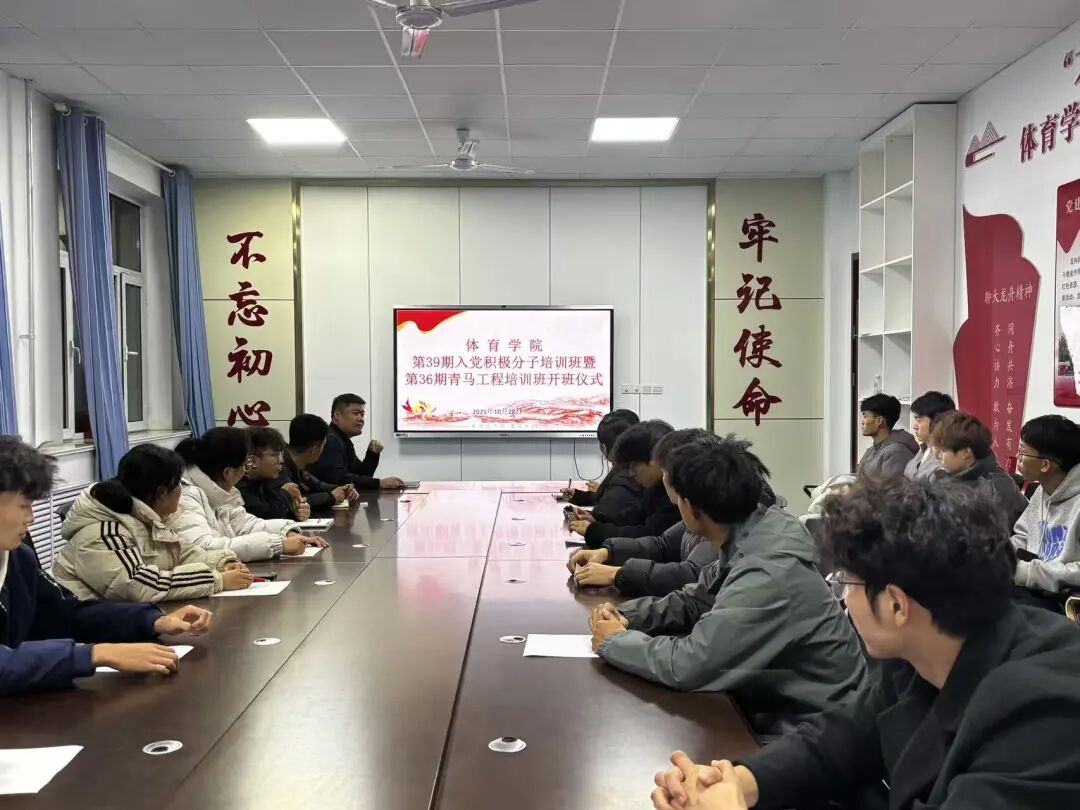 10月28日,体育学院举办第39期入党积极分子培训班暨第36期青马工程培训班开班仪式在党员活动室举行。本期全体学员参加开班仪式,学院团委书记陈明参加仪式并作动员讲话。