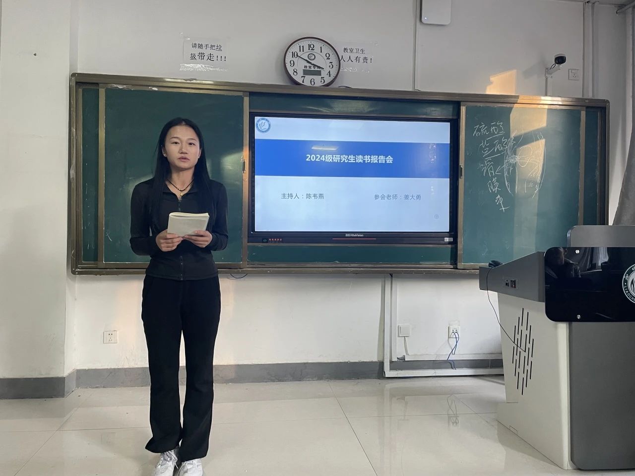 为促进同学们交流阅读心得、分享阅读体验,让大家能够从不同的视角解读文献,拓宽思维视野。11月20日下午在5-110教室开展体育学院研究生读书报告会。本次活动由2024级研究生陈韦燕主持,体育学院院长姜大勇、2023级部分学生以及2024级全体研究生出席本次会议,由2024级研究生厉彦文进行汇报。