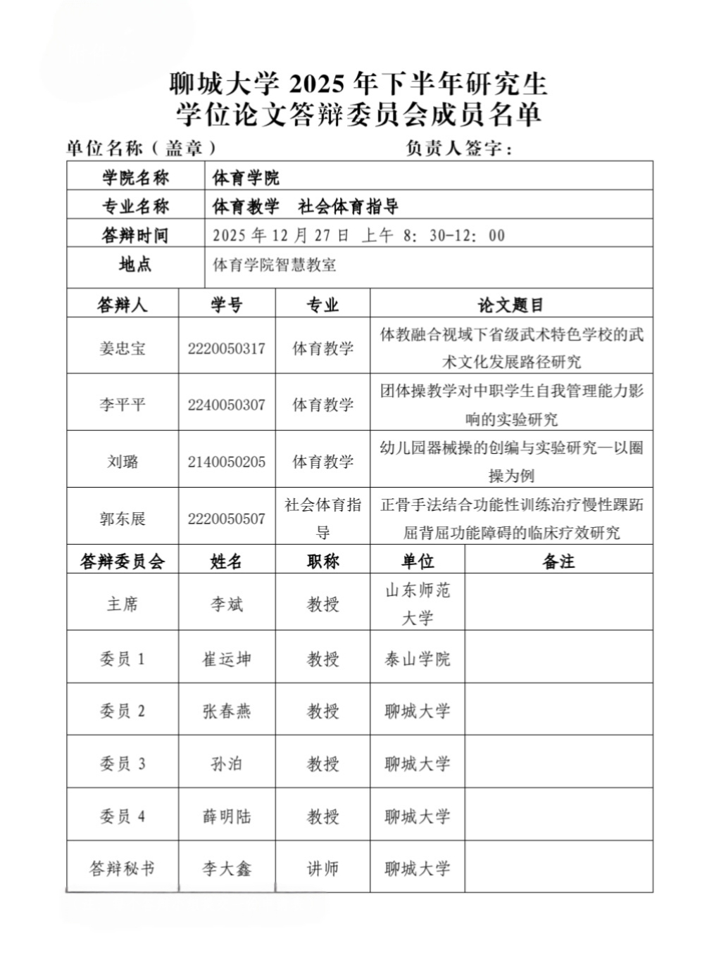 体育学院2025年下半年毕业研究生学位论文答辩