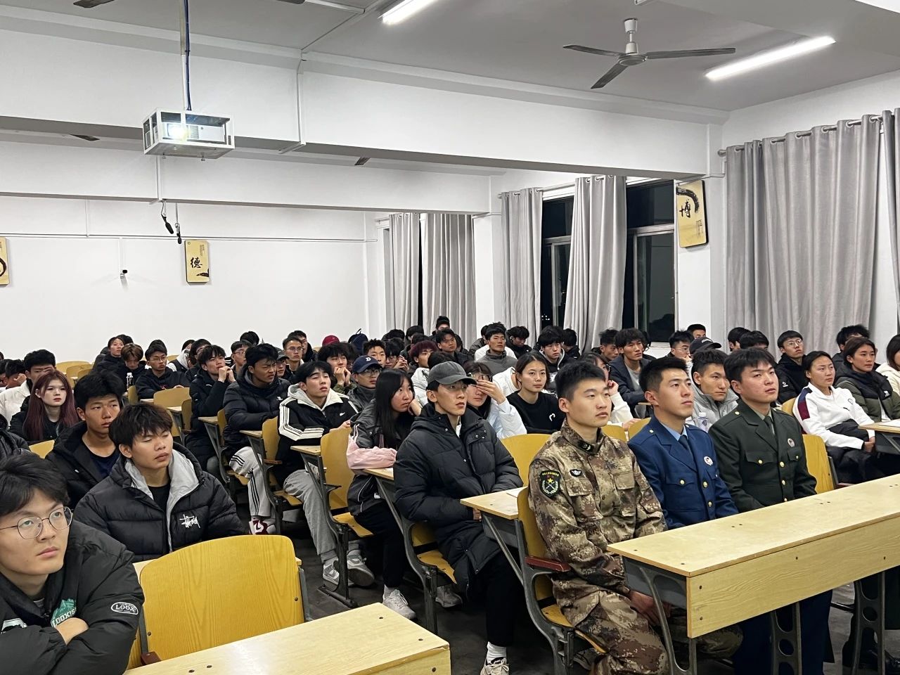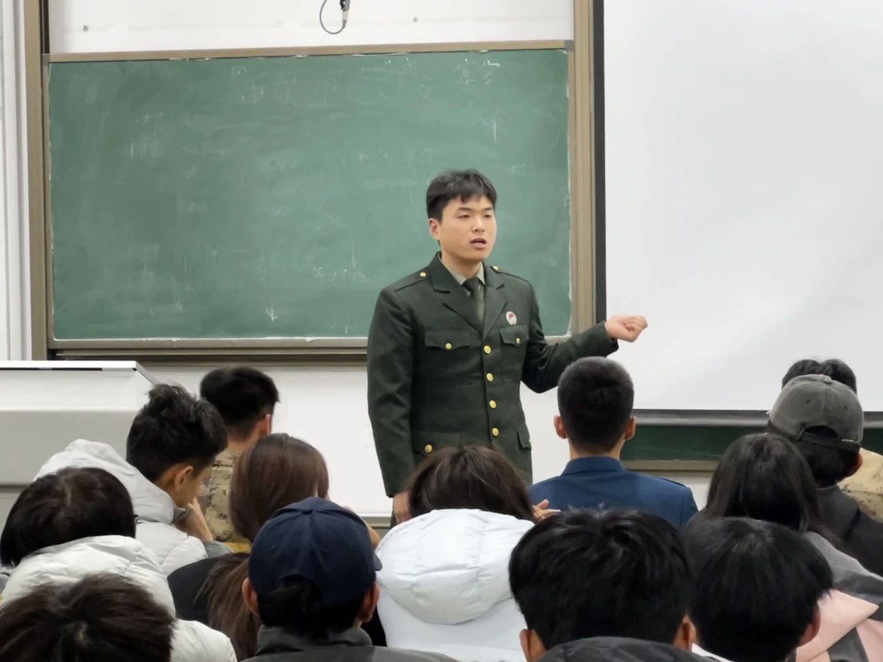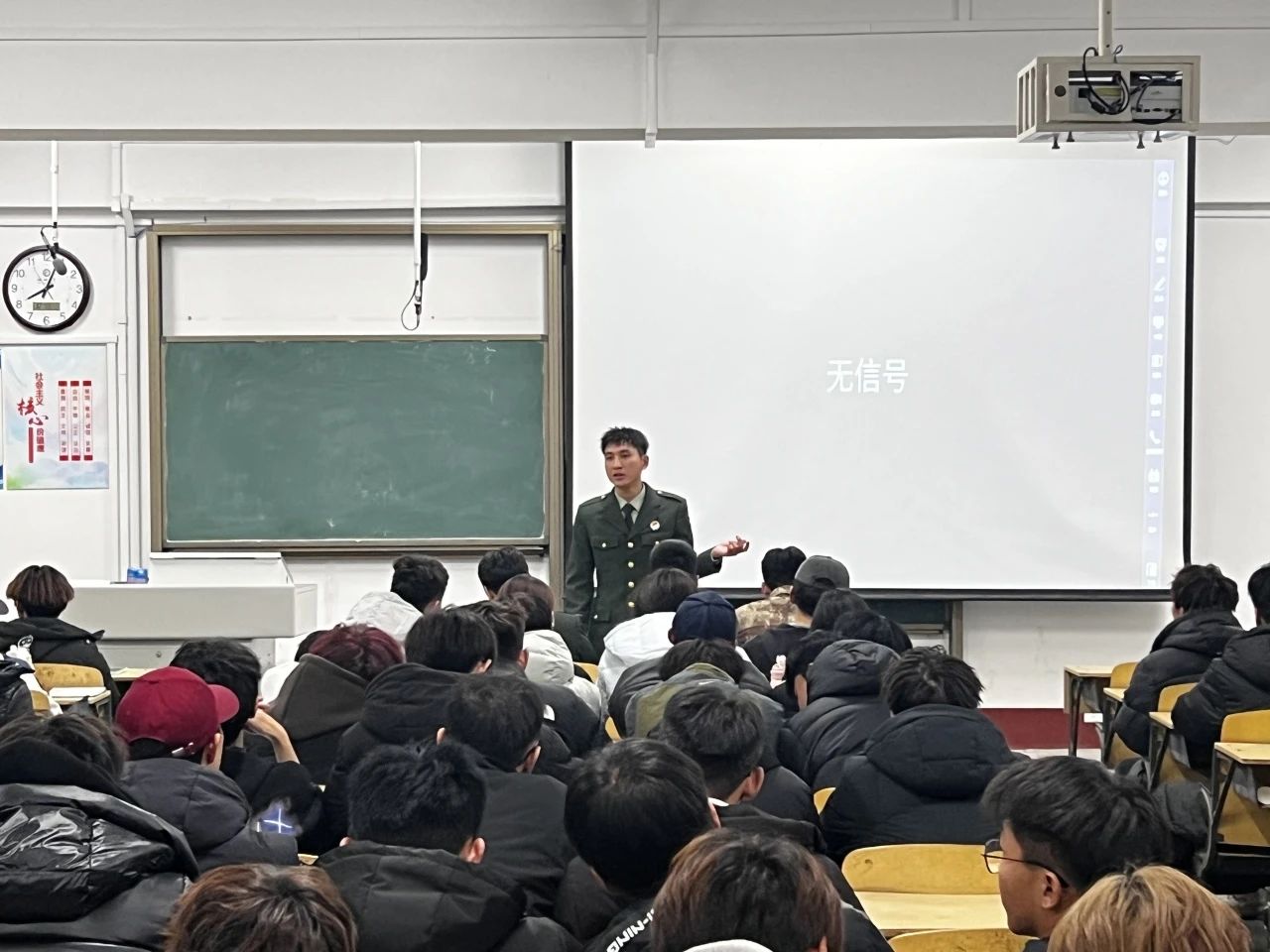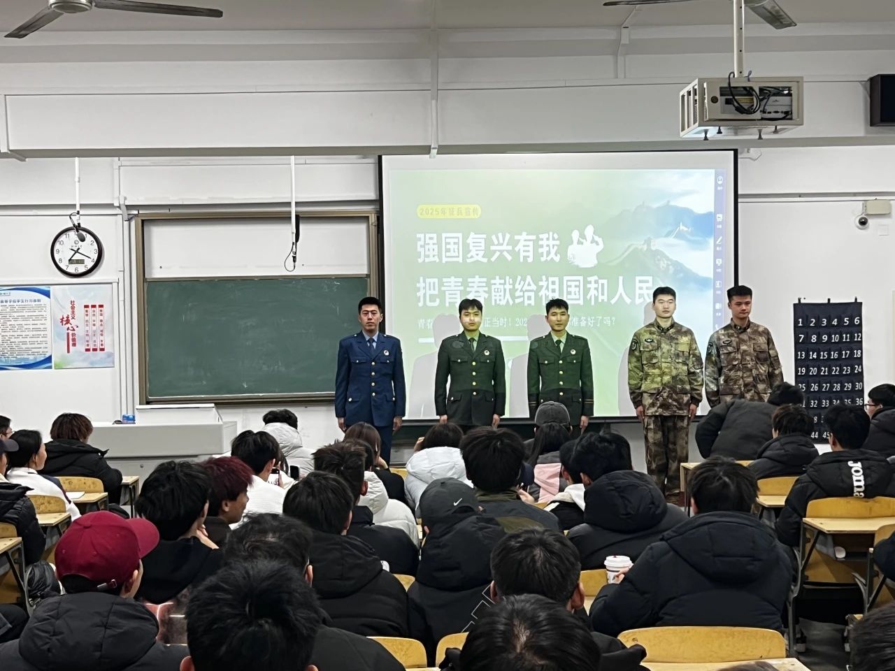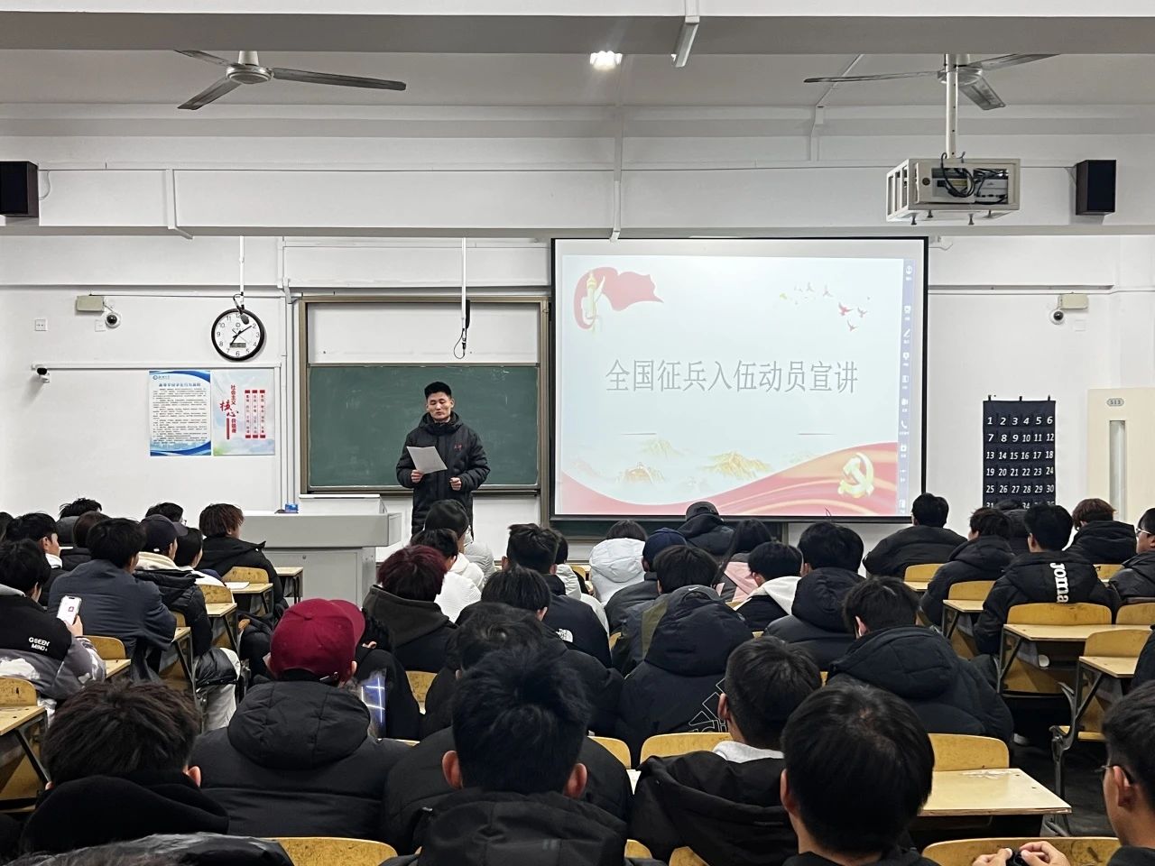 王鑫深入介绍了当今就业环境的情况以及参军的一些良好政策,强调新时代青年肩负着保家卫国的神圣使命,动员同学们积极响应国家号召,踊跃报名参军,为国防建设贡献自己的青春,将个人理想融入国防事业,在军队中砥砺青春、实现价值,为国家的繁荣富强贡献自己的青春力量。