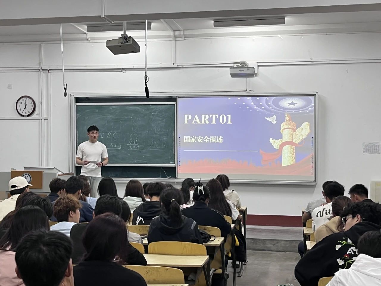 在国际形势风云变幻,传统与非传统安全威胁相互交织的当下,维护国家安全成为了一项艰巨而又迫切的任务。为切实增强师生的国家安全意识,全面提升同学们的国家安全素养,2025年4月15日,聊城大学体育学院于西校区8#611成功举办了一场别开生面的国家安全教育主题讲座及知识竞赛。本次活动由体育学院辅导员王鑫老师担任主讲,通过直播互动、知识竞答等创新形式,吸引了大一5个班级的100余名学生代表热情参与。