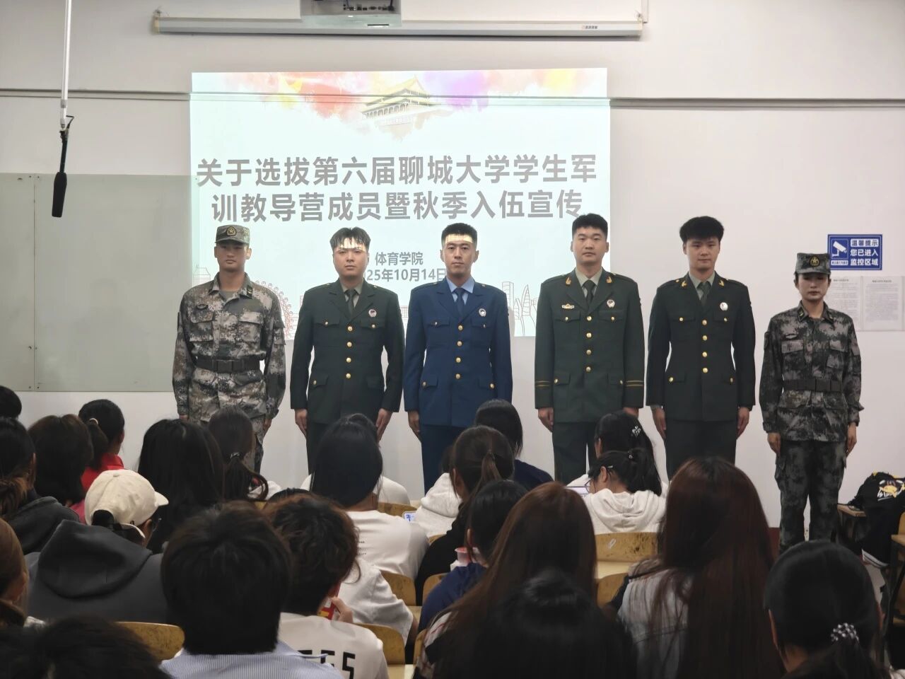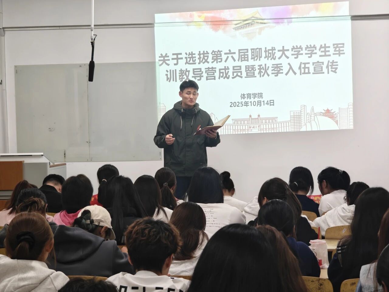 为厚植青年学子国防情怀,引导体育专业人才锚定报国方向,聊城大学体育学院于10月14日在西校区8#509教室顺利开展第六届学生军训教导营成员选拔暨秋季入伍宣讲会,以“一腔热血参军梦”为导向,为体育学子搭建政策解读、成长规划的关键平台。
