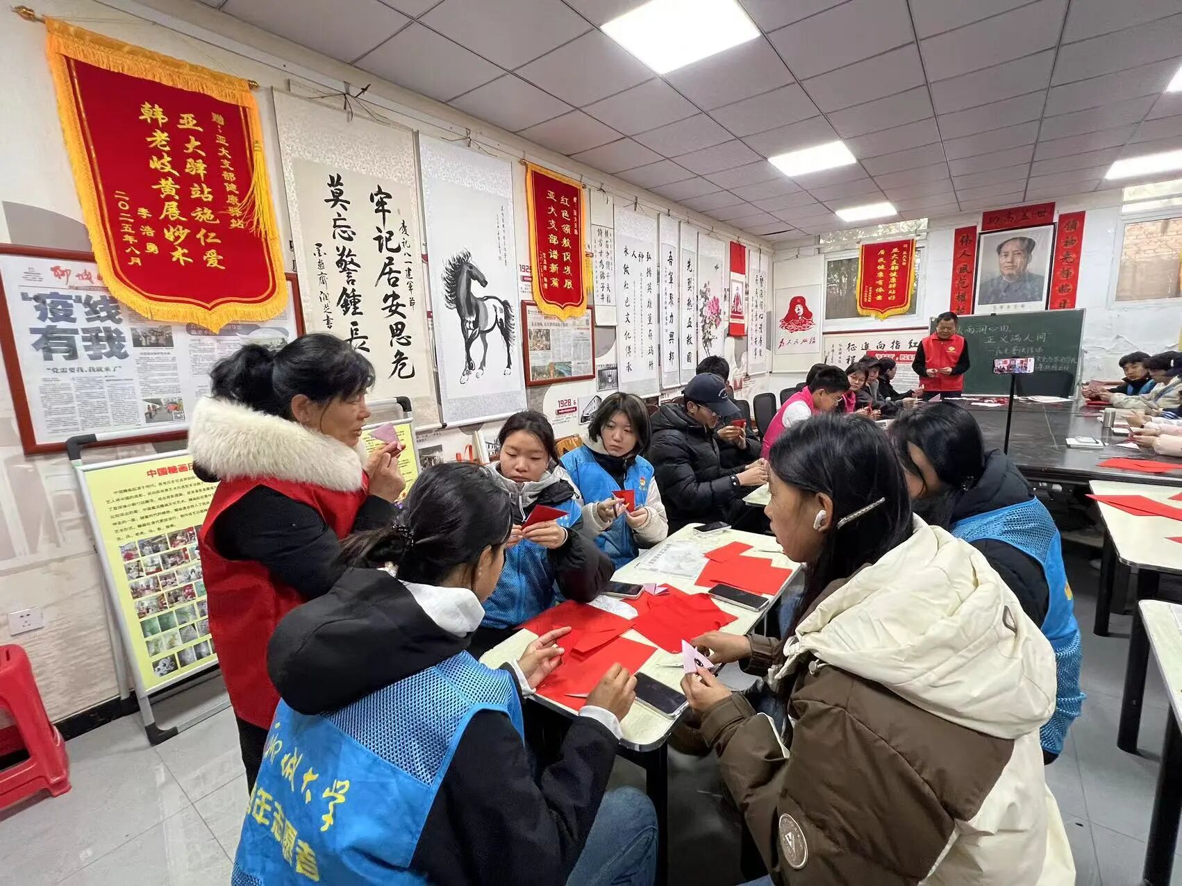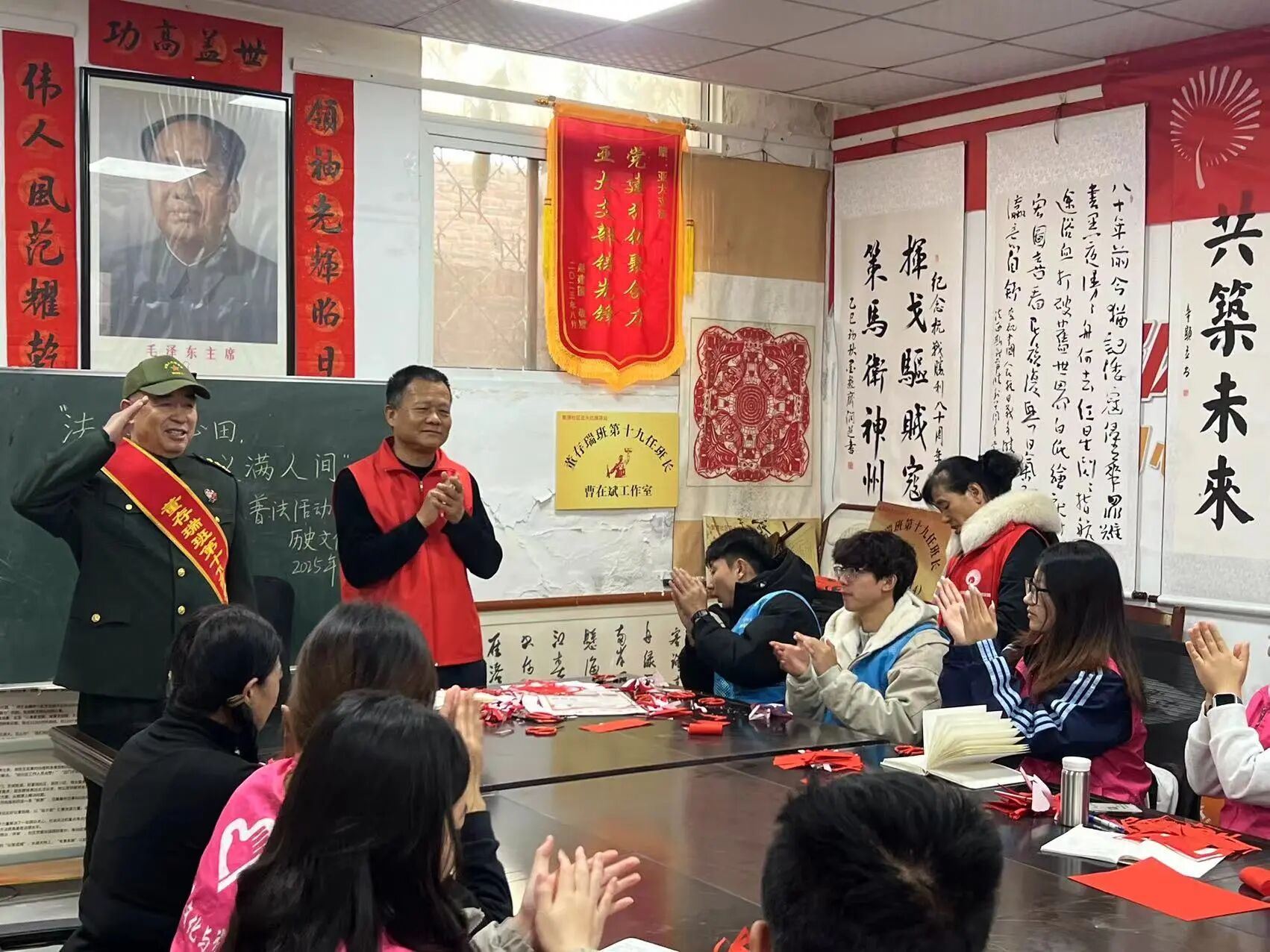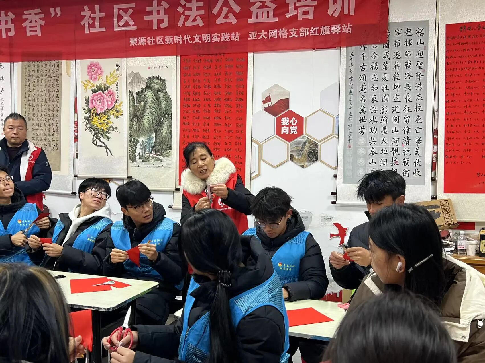 为弘扬中华优秀传统文化,增强青少年对非物质文化遗产的认识与体验,聊城大学体育学院社会实践部在马克思主义学院思政课教师的指导下于2025年12月6日在聊城市聚源社区开展了“武韵纸艺,悦享文化”主题实践活动。