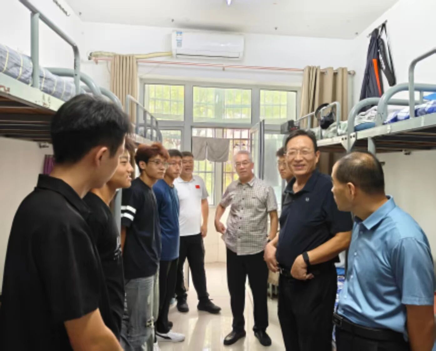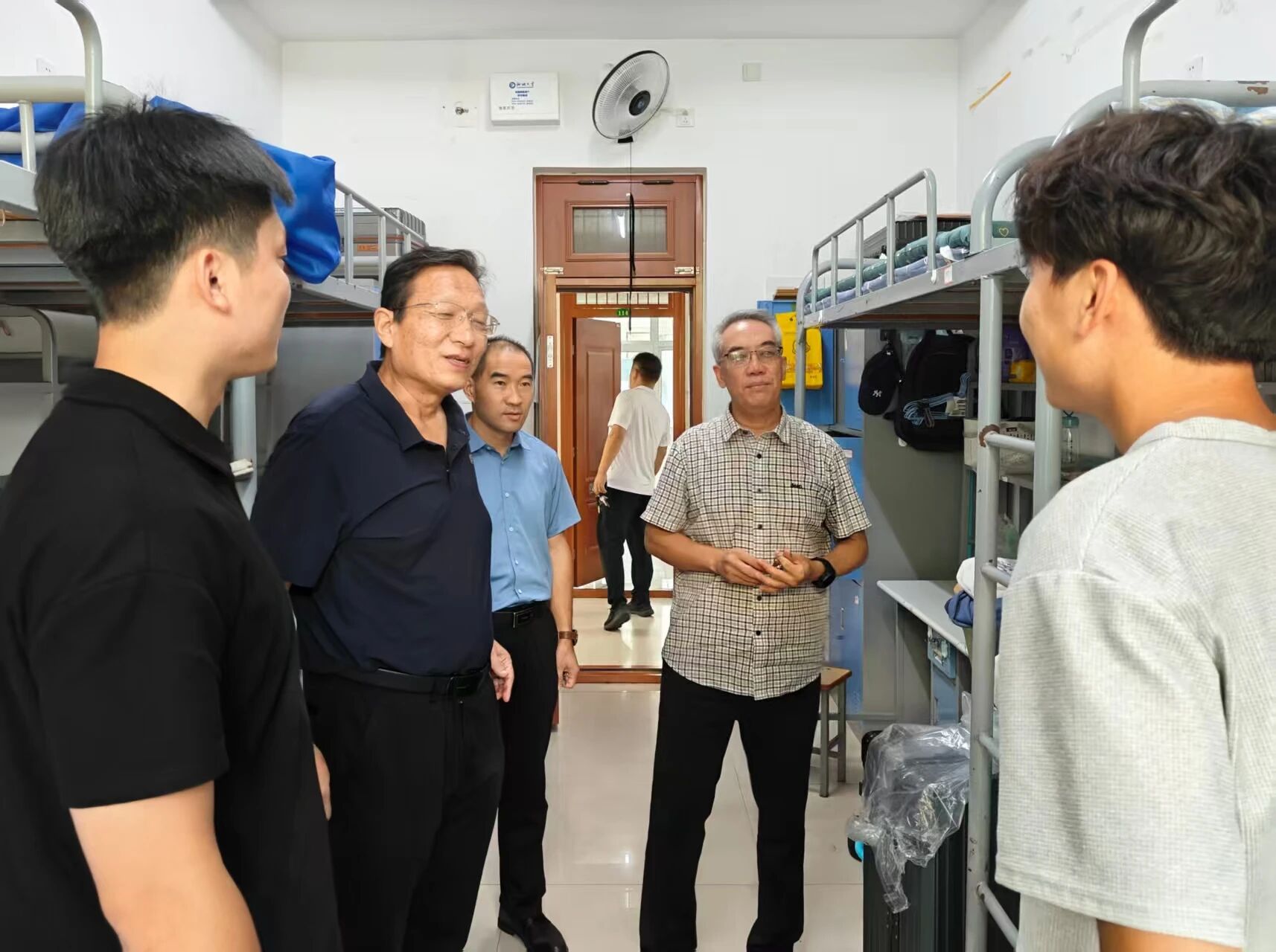 走访中,领导们仔细察看宿舍环境,与新生面对面交流,重点关注三方面内容:
