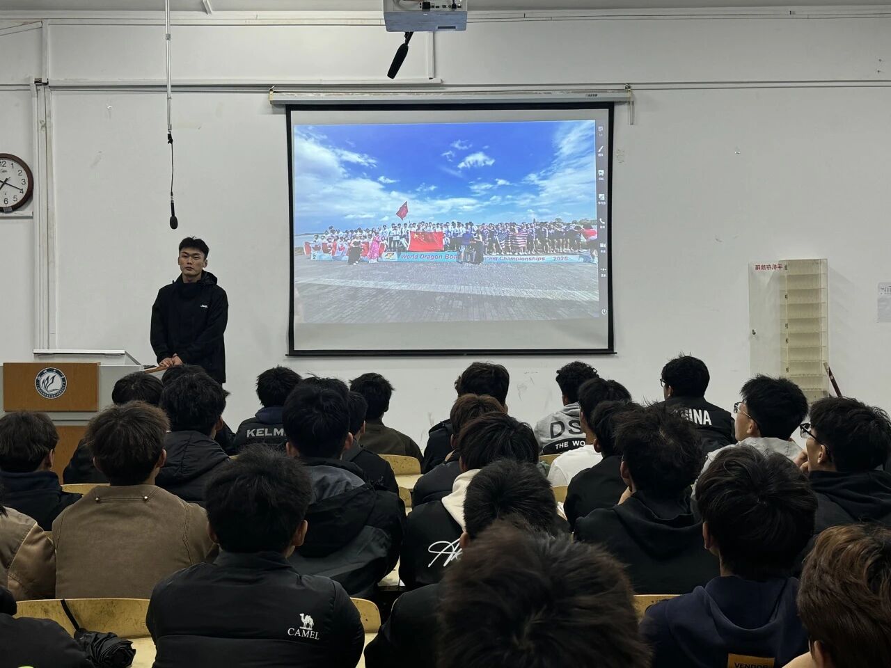 分享会上,唐明旺结合多年体育训练与学术深造的双重经历,生动诠释了运动精神在学风建设中的核心价值。作为学业与赛场双丰收的典范,他凭借扎实的学习成效,连续三年斩获校级一等奖学金,还顺利通过英语四级考试。在体育赛事领域,他身为聊城大学龙舟队青少年队长,于2023年至2025年期间跟随团队征战21场国家级、国际级龙舟赛事,在全国大学生龙舟锦标赛、中华龙舟大赛等国内顶级赛事中多次登顶,在亚洲龙舟锦标赛、世界龙舟锦标赛等国际赛事中也屡创佳绩,累计斩获39项冠军、20项亚军、18项季军。