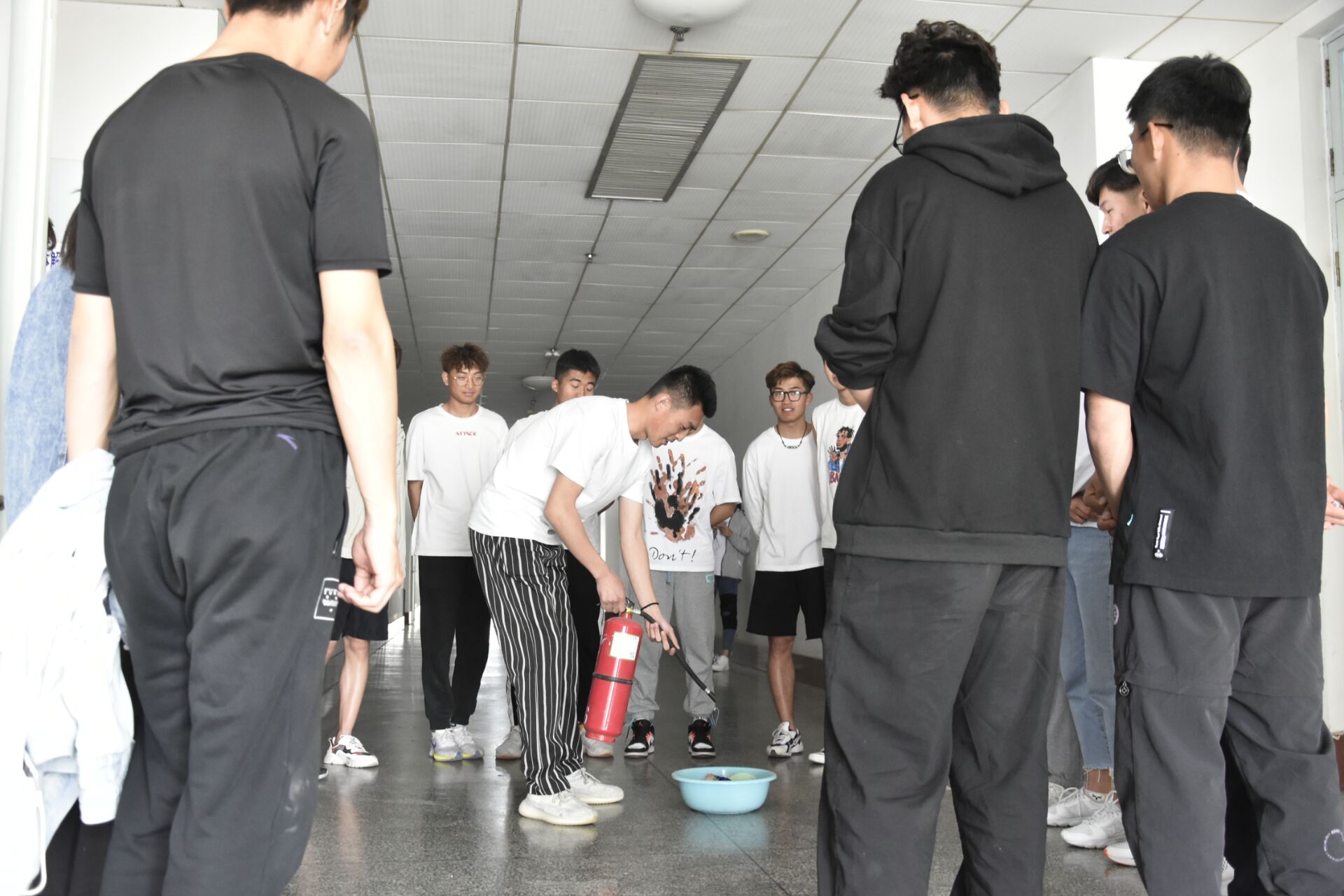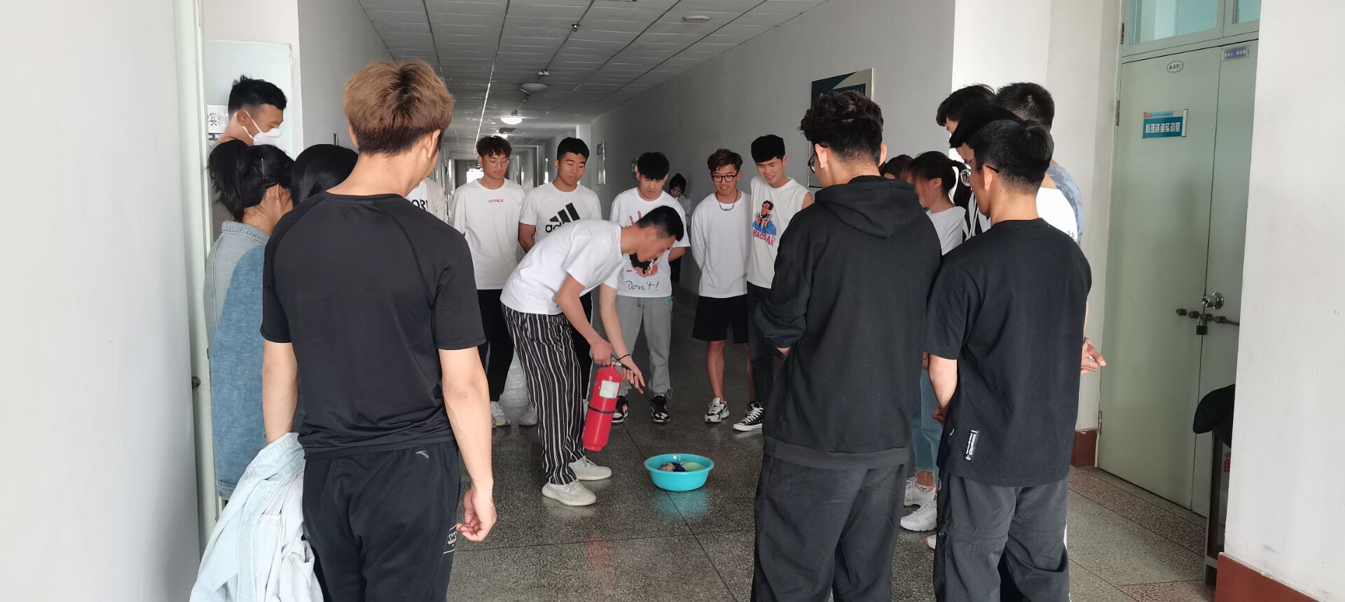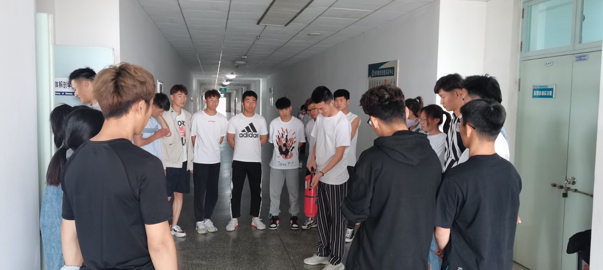 为确保疫情防控期间实验室生物安全,防范发生次生灾害,提升自我安全认知能力和自我防护能力,提高全校师生的应变处理突发事件的能力,2020年9月25日,体育学院300名2020级新生和研究生新生按班级分批次于实验楼A-608教室进行安全专业培训和应急演练活动。 专业老师在讲话中强调了实验室安全事故应急预案的重要性,要快速、高效、有序地组织开展事故抢险、救援和调查处理,能够预防和减少突发性灾害事件及其造成的损害。针对防疫和实验室安全方面的有关规章进行了说明,详细讲解了疫情防控期间使用酒精消毒安全注意事项以及火灾现场自救逃生技能和扑救初期火灾的方法等内容,讲解了实验室安全防护设施的正确使用方法,以及应对危险化学品泄露的正确处置流程。保障实验室安全最重要的是要提升广大师生的安全防范意识,要求高度重视实验室安全,确保人身财产安全。 受疫情的影响,在进行应急演练之前,专业老师带领志愿者们对演练所需要的场所进行了多次喷洒消毒液消毒杀菌,每天至少一小时开窗通风,保持空气流通,在疫情防控的决胜时期应急演练不松懈,本次演练包括“实验室灭火疏散及受伤救护”、“实验室废液泄露处置”、“消防器材使用培训”、“酒精灯操作失火应急处置演练”四部分,应急演练活动中,专业老师首先讲解了灭火器的使用方法,之后让同学们现场体验用灭火器灭火,提高学生自护自救的实际操作能力。演练过程配合顺畅、科学规范、安全有序,起到了良好的培训和教育示范果。 通过本次讲座以及应急演练,增强了自护自救技能,填补了师生紧急救护和逃生技能的空白,让学生们在抵抗疫情的同时提高了消防安全意识和自防自救能力,为打赢战“疫”期间火灾防控工作营造了良好的消防安全环境。