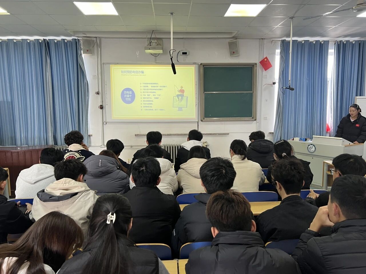 活动开始,主持人阐述了增强网络安全意识对保护个人信息安全、维护校园稳定的重要意义,引导同学们树立网络空间主人翁意识。过程中,通过精心准备的PPT展示和真实案例分享,详细讲解了电信诈骗的常见手段,包括虚假中奖、冒充客服、钓鱼链接、兼职刷单等多种形式,并结合近期发生的校园案例,让同学们对诈骗套路有了更直观的认识。活动最后,同学们纷纷表示通过这次活动,通过此次活动不仅掌握了识别和应对诈骗的实用技巧,更深刻认识到保护个人信息与财产安全的重要性。
