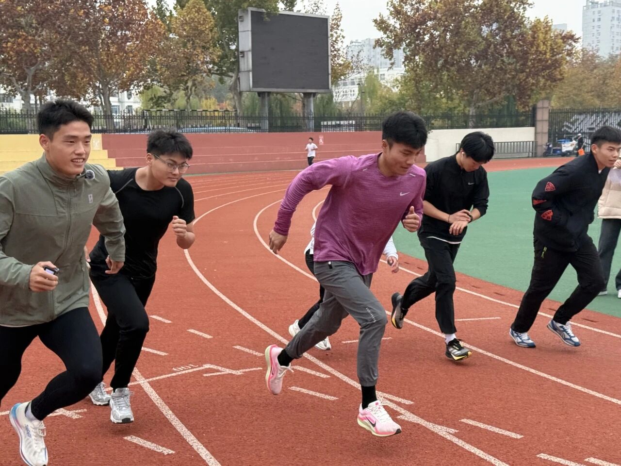 活动伊始,负责人介绍了比赛规则与注意事项,强调安全第一、友谊第二、比赛第三的原则。随着哨声响,参赛选手如离弦之箭冲出起点,奔跑在秋意盎然的田径场上。男生3000米、女生2000米的赛程不仅考验选手的耐力与速度,更是一场意志力的较量。赛道上,不少选手虽已气喘吁吁,却依然坚持到底,展现出顽强拼搏的体育精神。志愿者与医务人员全程守护,确保赛事安全有序进行。