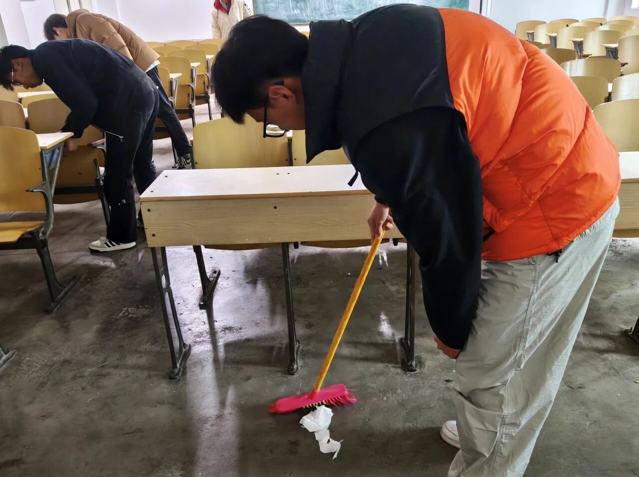 为营造洁净雅致的校园氛围,弘扬劳动精神,聊城大学体育学院生卫部于11月8日在聊城大学西校区5#307教室开展大扫除活动。