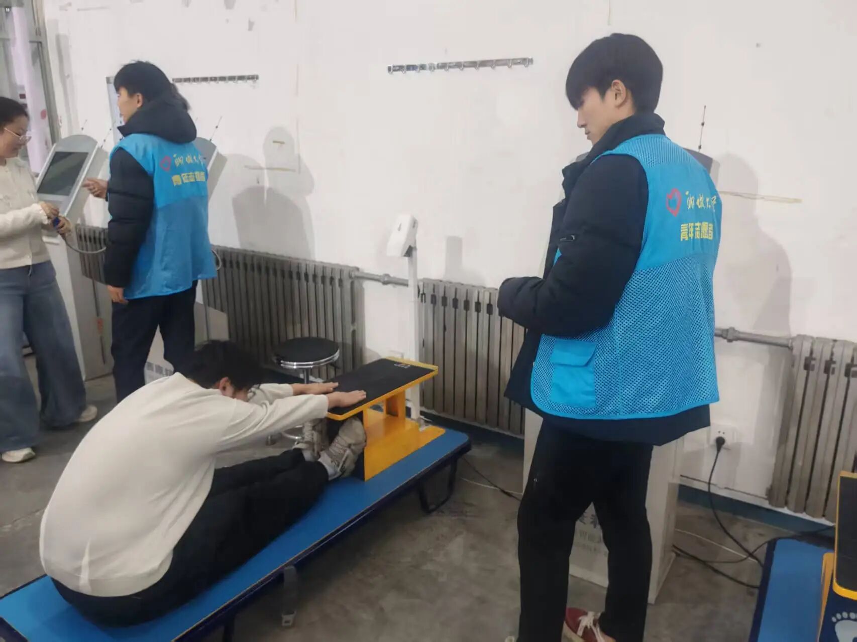 为了帮助大学生熟悉体测项目标准与测试流程,强化大学生健康意识与运动习惯,通过针对性指导改善体能短板,助力养成终身锻炼的生活方式,聊城大学体育学院社会实践部在马克思主义学院思政课教师的理论指导下开展于2025年11月30日,在聊城大学东校区体测中心开展“实践筑梦,体测护航”活动。