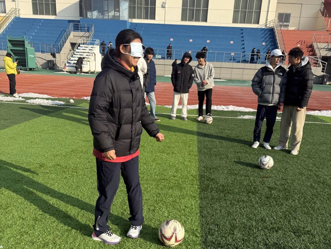 为增强学生体质,缓解学习压力,增强学生们的灵活性与方向感。聊城大学体育学院文体部于2025年12月14日在西校区南田径场举办“蒙眼足球大战”活动。