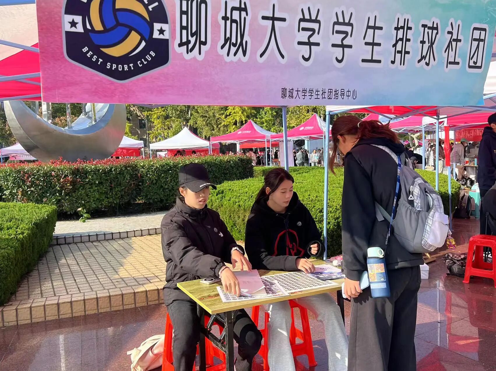为进一步丰富校园文化生活,搭建学生综合素质提升的多元平台,聊城大学2025年社团纳新活动在学校运动场盛大启幕。全校近百个学生社团同台竞技,以特色展示、互动体验等创新形式,吸引数千名新生热情参与,现场人头攒动、气氛火爆。