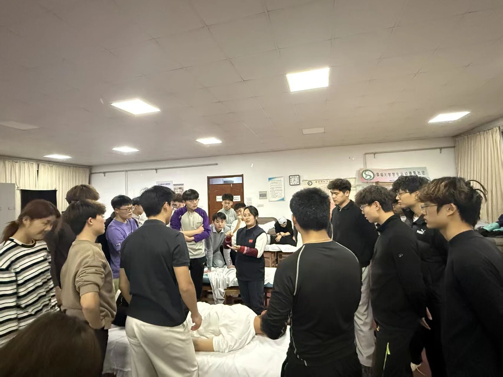 11月27日,聊城大学体育学院运动康复专业研究生崔梦超在运动康复实训中心,为2025级运动康复专业本科生带来一场别开生面的实操指导活动。本次活动延续“以老带新”的优良传统,以“研本衔接”为路径,助力本科生将专业知识转化为扎实的实操技能。
