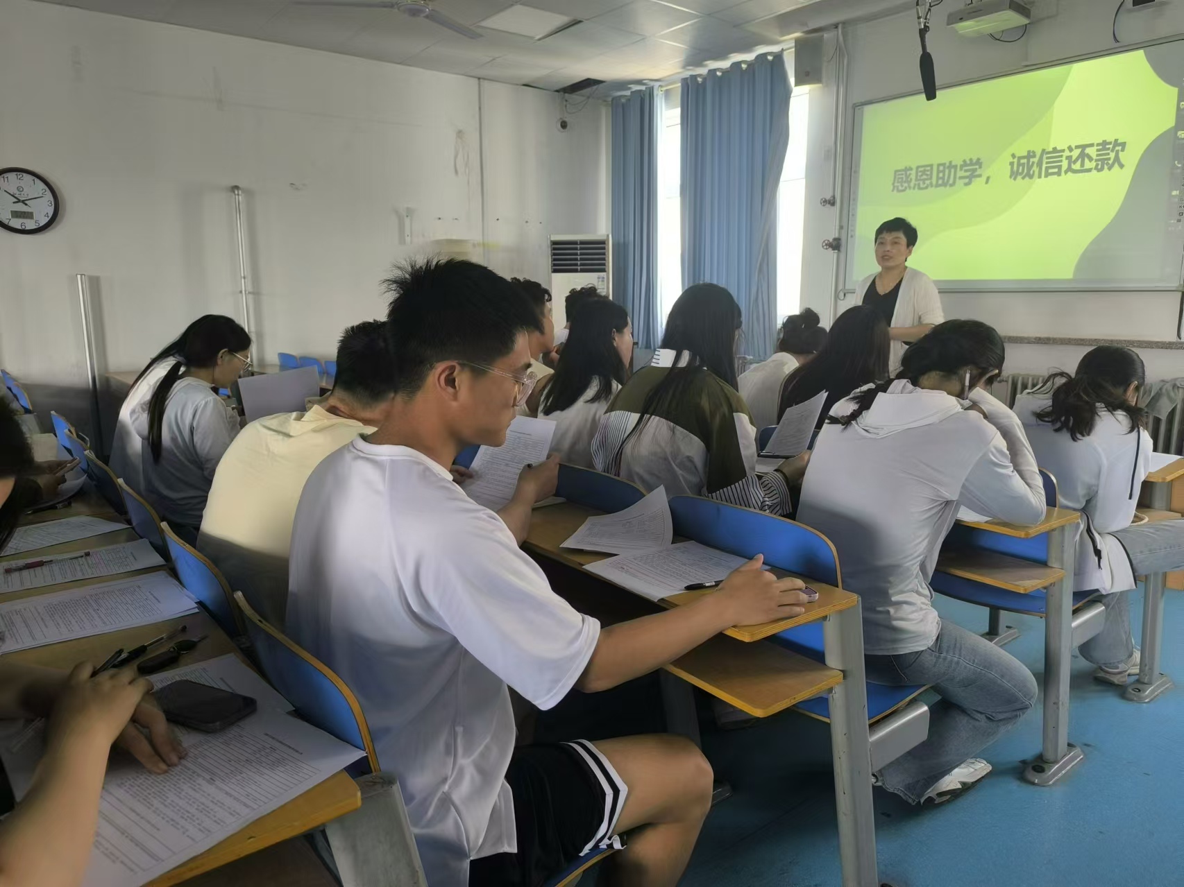 5月22日聊城大学体育学院在聊城大学西校区5号楼406教室举办了以“感恩助学,诚信还款”为主题的教育活动。此次活动旨在深化学生对国家和社会资助的认识,强化学生的感恩意识和诚信观念,引导他们在未来的人生道路上,以实际行动回馈社会,展现新时代青年的责任与担当。