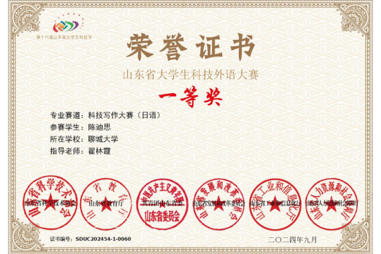 第十二届山东省师范类高校学生从业技能大赛一等奖