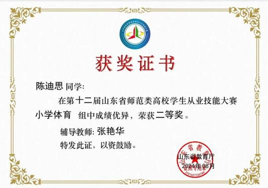 第十二届山东省师范类高校学生从业技能大赛二等奖