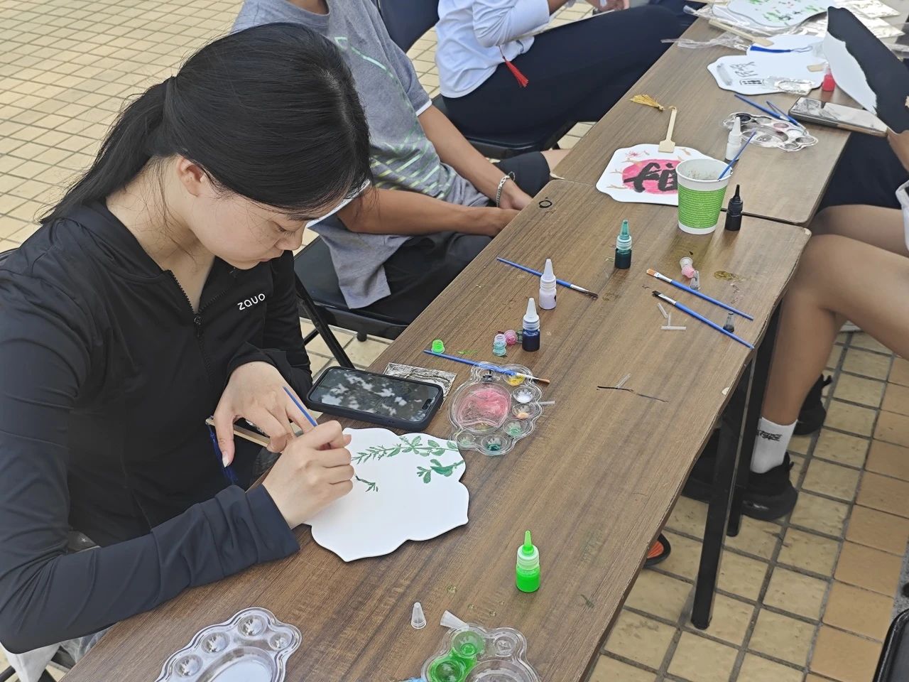 创意体验,邂逅别样端午风情。学院资助服务部举办的端午主题活动同样亮点十足。在团扇绘制区,洁白的团扇、缤纷的颜料、齐全的画笔,为同学们提供了创作的舞台。大家化身“艺术家”,或勾勒憨态可掬的卡通粽子,或描绘龙舟竞渡的激烈场景,每一把团扇都承载着独特的端午故事。游戏区的“弹乒乓球进水杯”游戏更是人气爆棚,同学们挑战将乒乓球弹入指定水杯赢取五彩绳,现场加油声、欢笑声不断,失败的同学不服输,成功的同学分享喜悦,传统文化在趣味体验中焕发新生。