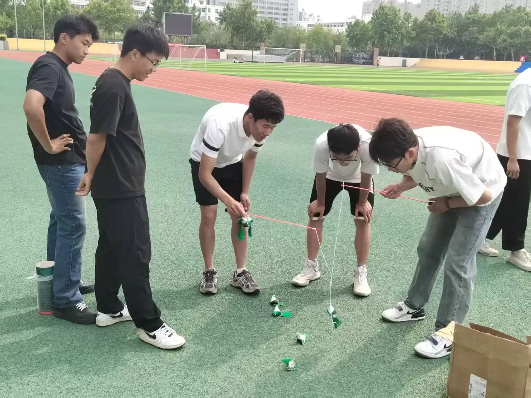 趣味竞技,畅享端午民俗魅力。粽子套娃、竹筒传球、端午投壶、钓粽子四大趣味项目吸引了全校师生踊跃参与。粽子套娃区域,同学们手持套圈,屏气凝神,在套圈划过的优美弧线中,欢呼声与惋惜声交织;竹筒传球环节,团队成员默契配合,在紧张的接力中尽显团结拼搏精神;端午投壶区域,大家模仿古人优雅姿态,感受传统游戏的深厚底蕴;最受欢迎的钓粽子项目前,同学们手持特制“鱼竿”,小心翼翼“钓”起粽子,收获满满的成就感与节日喜悦。这场趣味赛不仅是欢乐的竞技,更是传统文化的生动传承。