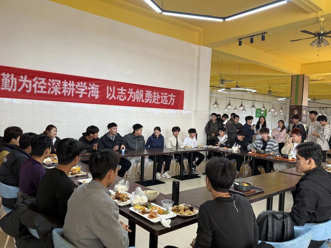 现场气氛热烈,互动频繁,同学们踊跃提问、深入交流,对诚信考试的重要意义有了更为深入的认识。轻松愉悦的围坐交流形式,有效打破了传统宣讲的刻板模式,同学们在享受美味的同时,也深切感受到学校资助政策所传递的温暖与关怀。