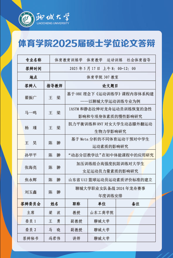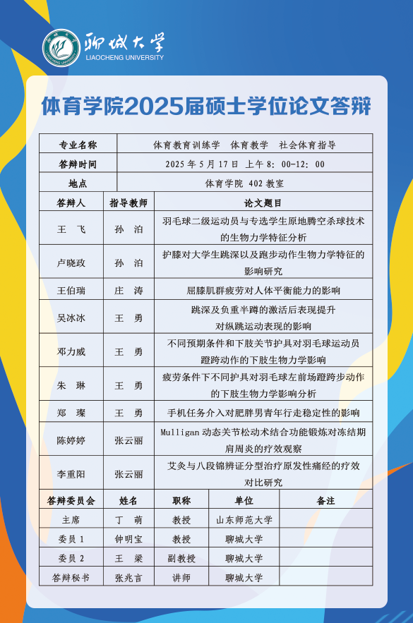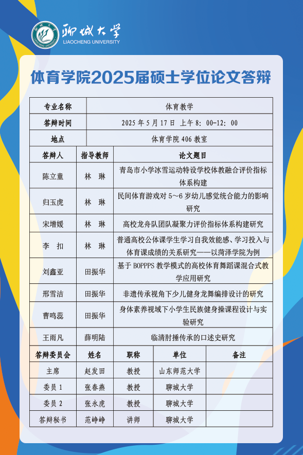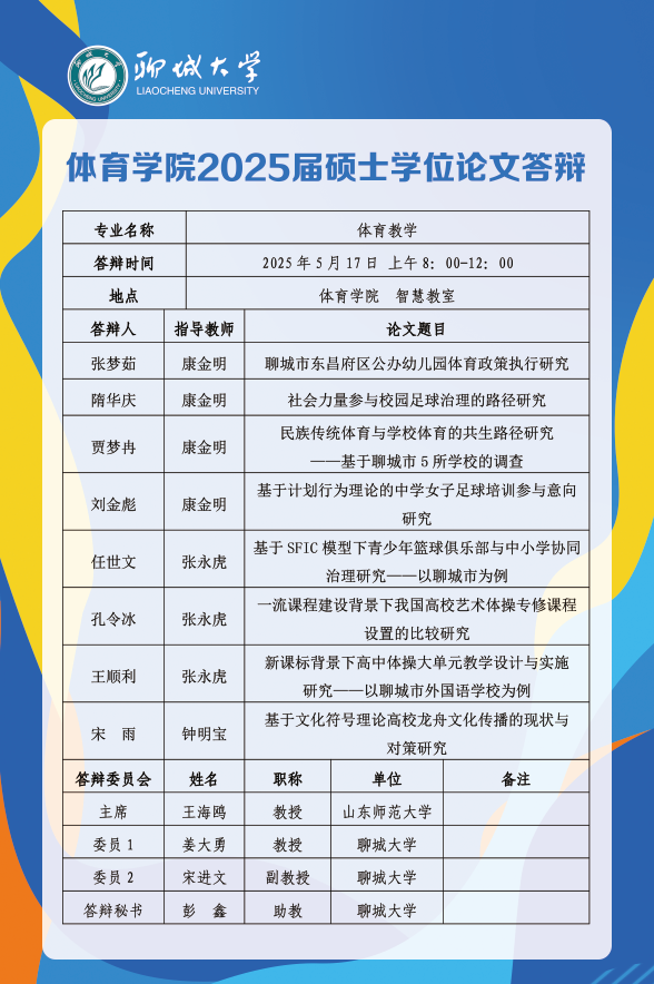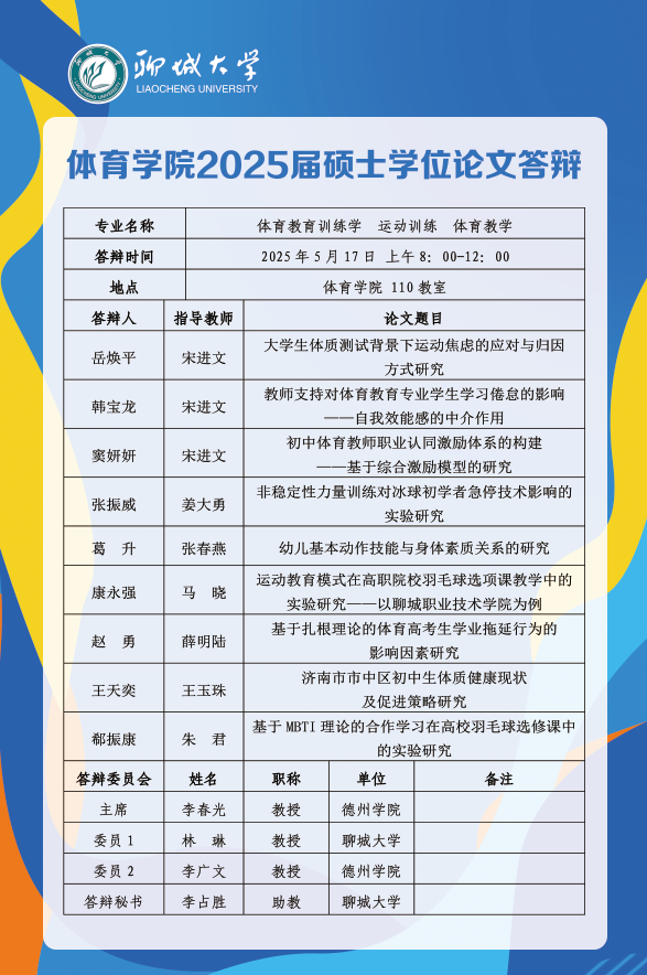 体育学院2025届毕业生论文答辩安排
