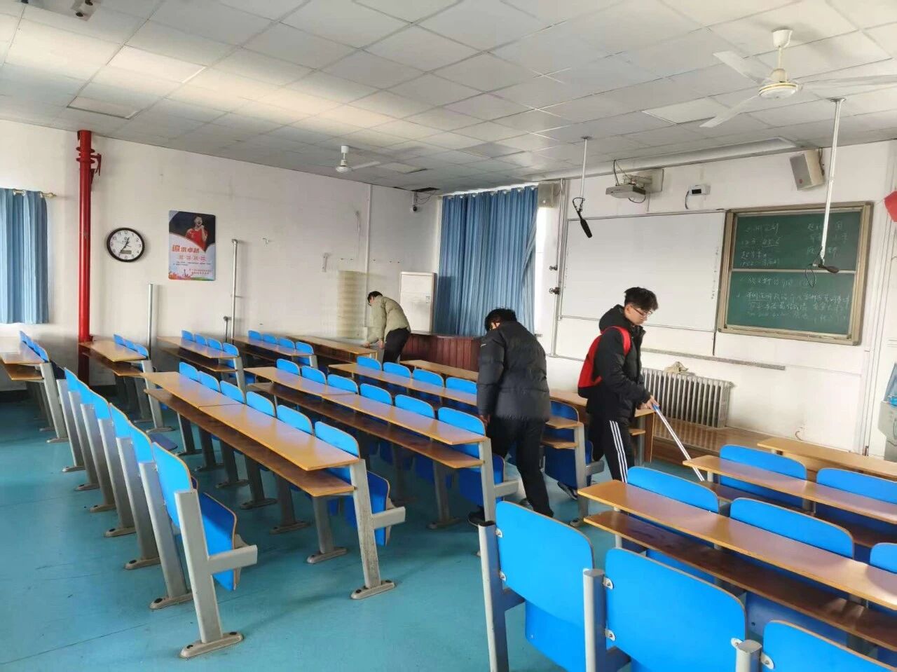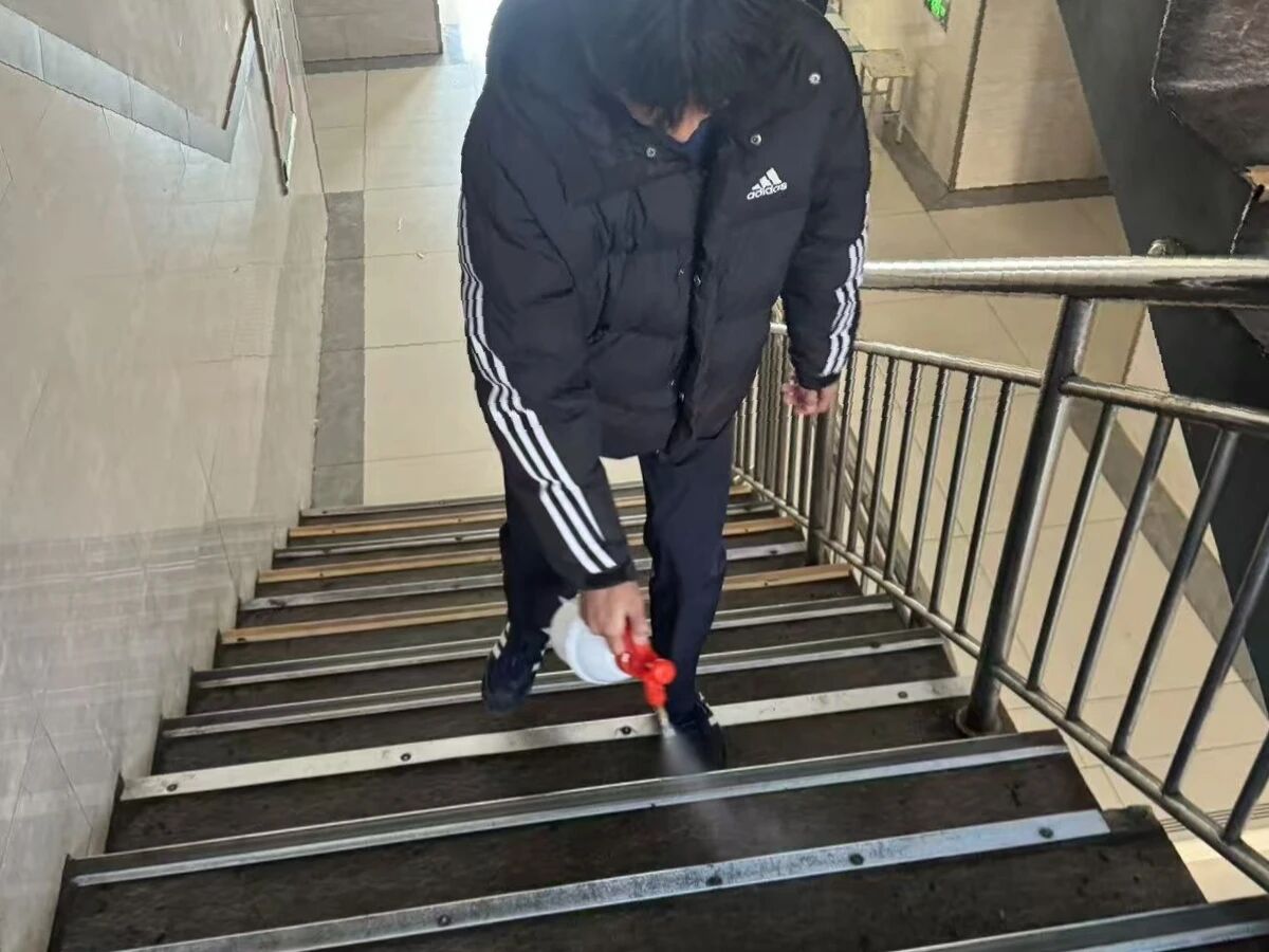 消杀现场,工作人员与志愿者采用“错峰作业”模式,避开学生上课与休息高峰时段,按照“逐栋逐层、逐间覆盖”的原则有序推进消杀工作。针对门把手、桌面等高频接触区域,以及教室课桌、座椅、讲台、门窗、地面等重点部位,分别制定针对性消杀方案,严格使用规范配比的含氯消毒液细致擦拭,随后用清水清除残留;对电子设备采用75%酒精湿巾精准擦拭消毒;对卫生间、垃圾桶周边等易滋生细菌病毒的重点区域,进行全方位喷洒消杀,确保不留死角、不漏盲区。消杀过程中,工作人员同步检查各宿舍、教室通风情况,现场向学生讲解甲流防控要点及消毒剂安全使用知识,进一步强化学生自我防护意识与能力。