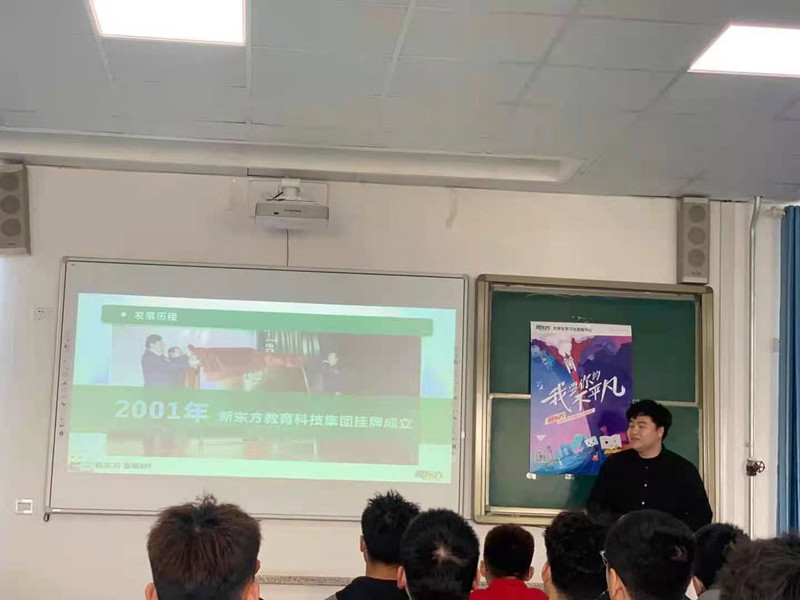 在宣讲会开始前,现场的工作人员为到场的学生们分发了宣传资料并播放了企业招聘宣传视频,使学生们对公司有了初步的了解。宣讲会伊始,新东方教育科技集团校招负责人向学生们大致介绍了公司的整体定位,并在管理团队、运营经验和研发实力方面作了详细的说明。除此之外,负责人介绍了企业的基本保证、员工福利和企业的晋升渠道。之后又着重解读了对于该公司在教育行业的人才需求方向和人才培养计划以及校招的具体流程。宣讲结束后,同学们积极的参与了现场互动环节,咨询了有关招聘人数、实习要求、薪资福利、职场晋升、工作需求等多方面问题,负责人逐一做出了认真解答。最后企业的工作人员现场收取了同学们的简介,并在现场开展了一对一的小面试。