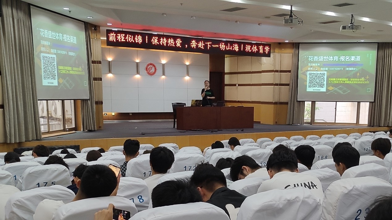 为切实做好2023届毕业生就业工作,营造良好的就业氛围,为毕业生求职和用人单位招聘搭建平台。5月19日上午,体育学院于西校区图书馆报告厅组织了北京花香盛世体育专场宣讲会。19级部分学生参加了本次招聘会。