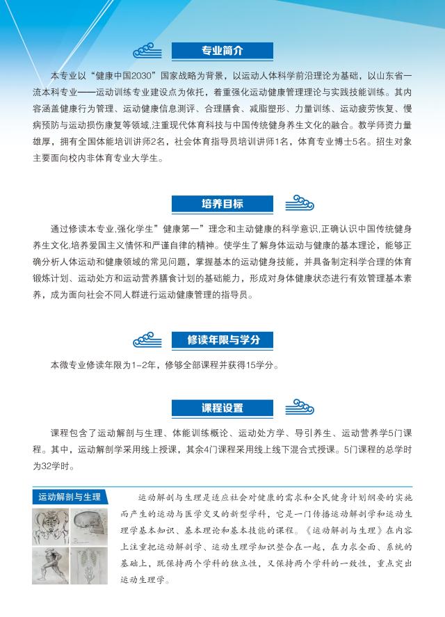 体育学院运动健康管理微专业2023年秋季学期招生简介